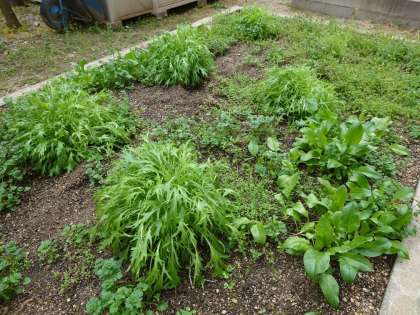 昨年12月、苗植えをした水菜・サニーレタス・チマサンテュ・ホウレン草を収穫しました。