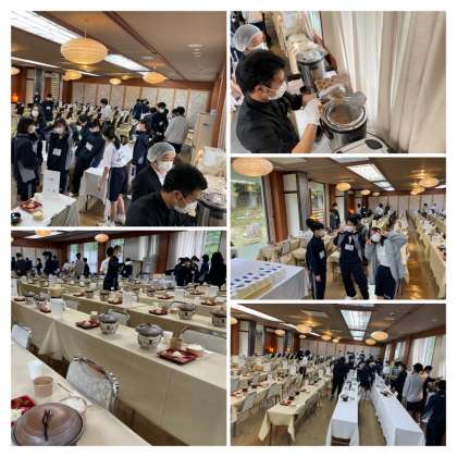 6時50分 食事係が朝食の準備をしています。