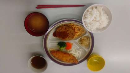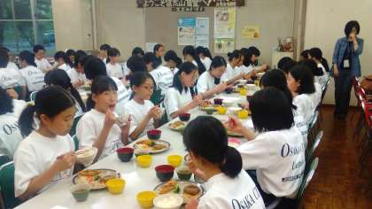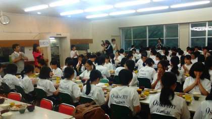 入所式をすませ、お風呂に入った後、夕食をいただきました。食堂のご飯がなくなるほどの勢いでみんな食べていました。満腹です!
