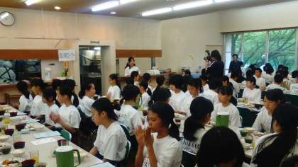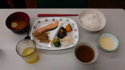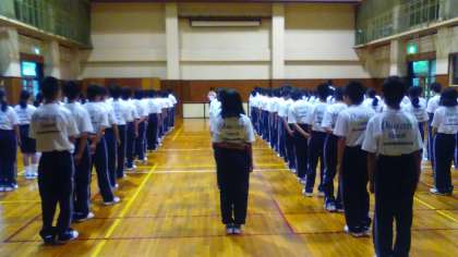 一泊移住二日目。今日も朝まで雨が降っていました。朝の集いを体育館で行い、その後朝食をとりました。このあと、ドッジボール大会です!