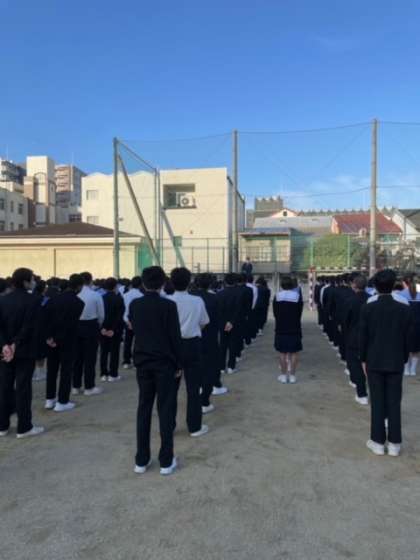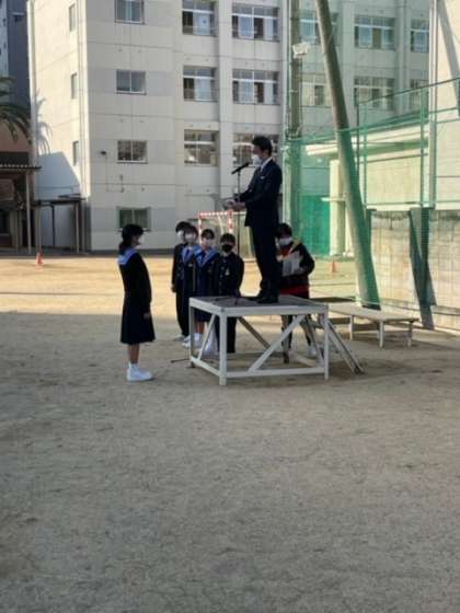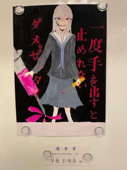全校集会で、薬物乱用防止ポスター・コンテストで選ばれた、優秀賞の表彰が行われました。