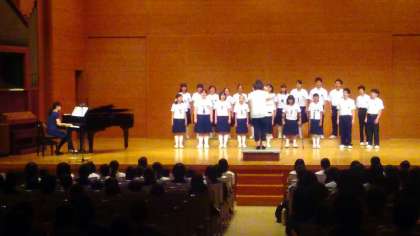 7月31日(金)、わが上中合唱部が大阪市立中学校総合文化祭の一環である「合唱祭」に、夕陽丘中学校合唱部と合同で参加してきました。