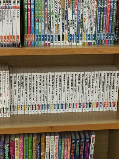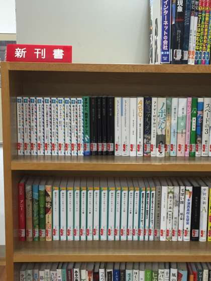 カウンター横の新着本書棚にならべてありますので、昼休みに図書館に来てください。