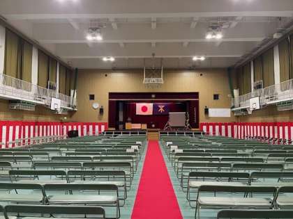 明日に行う「令和5年度 第71回卒業証書授与式」にむけて、1年生・2年生・地域の皆様・PTA役員・実行委員の皆様が心を込めて、会場等の準備を行いました。
