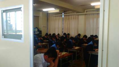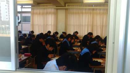 今日は3年生の実力テストでした。文活も終わり、3年生は進路に向けて努力あるのみです。そんな雰囲気が伝わってくる真剣な表情でみんなテストに臨んでいました。