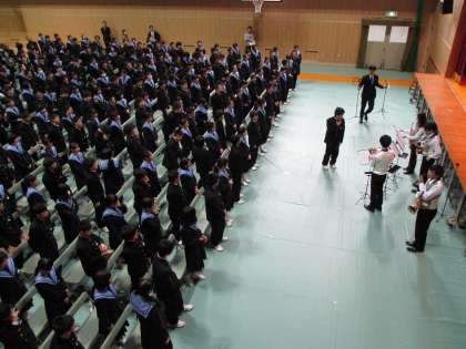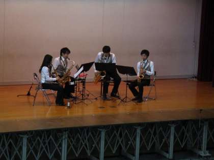 11月5日に芸術鑑賞として「なぎさサクソフォンカルテット」の演奏を鑑賞しました。日頃は聞く機会の少ないプロの演奏にみんなはうっとりしたり、手拍子をしたり、そして、最後にプロの方と合同演奏合唱したり、少し難しい部分もあったのですが、最後までしっかりと鑑賞できました。