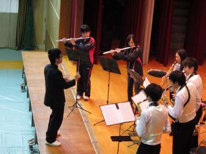 家庭科の仲西先生と国語の柚木原先生が最後の曲をカルテットの方と一緒に見事なフルートの演奏を披露してくださいました。