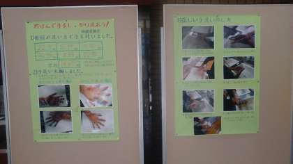 本校でも風邪が流行ってきていますが、そんな中、保健委員会が風邪をはじめ、様々な病気の予防の一つである「手洗い」について調べ、玄関に結果をまとめ、掲示してくれています。