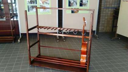 今度は、音楽準備室に置く「ギターラック」2台です。アンティックな色合いで細部にわたり丁寧な仕上げ、どこから見てもメーカーの既製品のような出来栄えです。