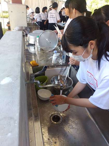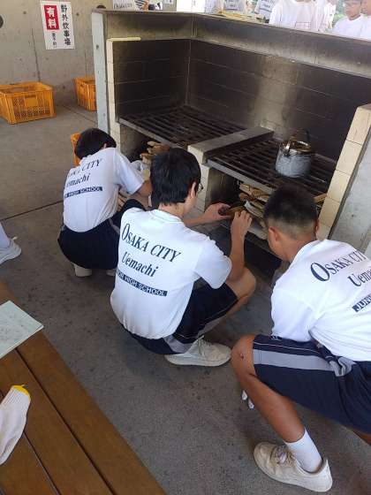 野外炊事が始まりました。