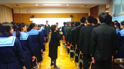 本日の5・6時間目を使って、3年生が面接の練習を行いました。高校の先生に来ていただき、面接におけるポイントや普段からの心構え等を実際の面接場面を交えながら、具体的にご教授いただきました。