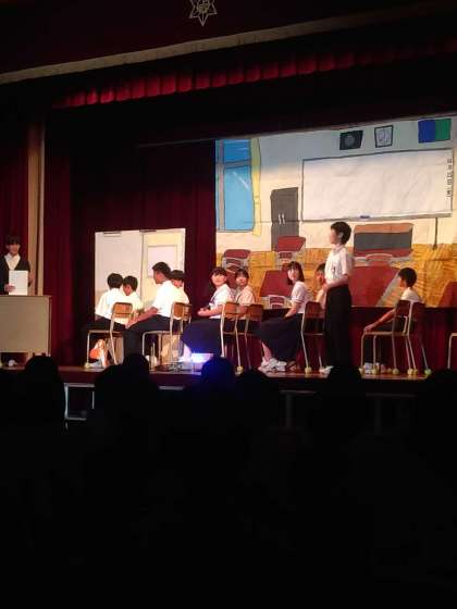1年生創作劇「共に助け、共に生きる」の様子です。