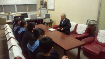 6〜7人のグループで校長先生からの質問に応えたり、そこから発展した話をしたりします。みんな校長室前での待機の時から緊張気味で、ソワソワしていましたが、いざ始まると校長室から笑い声が聞こえたりして、少しはリラックスしながら話ができたようです。