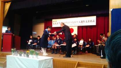 1月30日(土)にアネックス パル法円坂で第3回「伝えよう!いのちのつながり」が開催され、『家族のきずな作文』で上町中からも3名が表彰されました。中学生の部で最優秀賞を富山あかりさん、入選を高橋奈々美さん、柿本悠輔さんがそれぞれ受賞しました。