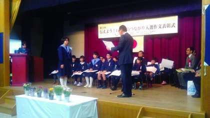 当日は2名が参加し、大勢の観客の前で自分の作文を朗読してくれました。家族の愛情、温かさを感じ、感謝の気持ちが込められた素晴らしい作品ばかりでした。