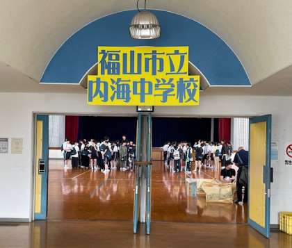 昼食会場を出発して、内海・沼隈選択別体験活動に向かいます。
