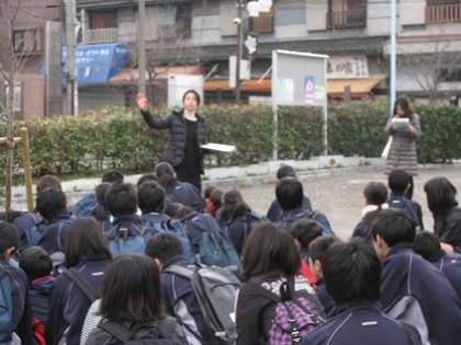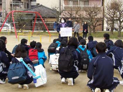 2月6日(土)に1・2年生の土曜授業として、「上町防災活動」に取り組みました。朝7時に直下型大地震が起こったという想定で、まずは各自、緊急避難物資を持って各地域の一時避難所に集合して、安否確認を行いました。