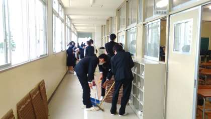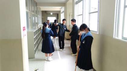 本日、3年生が卒業式の練習の後、最後の大清掃を行いました。教室を中心に、2階のフロアやトイレ、職員室前など心を込めてみんな一生懸命に取り組んでいました。