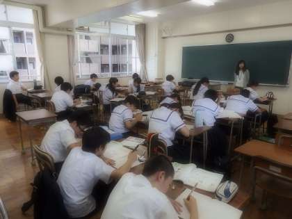 各学年に学生ボランティアの先生方が来てくださり、どの学年も先生に質問する姿が見られました。3年生の教室には学年の先生も見に来てくださり、生徒たちの真剣に投げかける質問に納得するまで粘り強く応じてくださり、時間を延長する場面もありました。