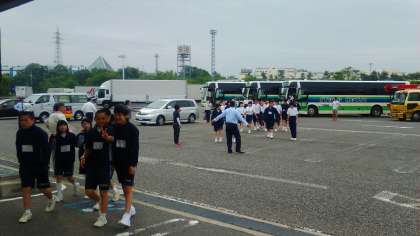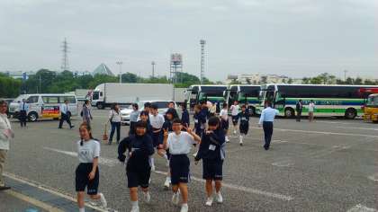 予定通り、9時15分に黒丸PAでトイレ休憩をとりました。みんな元気満々です。まだ、雨も降っていません。