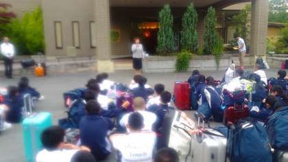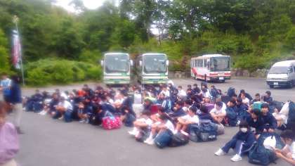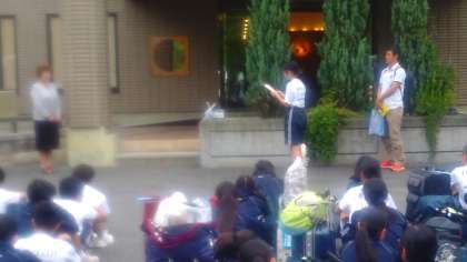 コース別体験活動も無事に終え、宿舎に移動し、入館式を行いました。代表の挨拶の後、宿の女将さんから温かいご挨拶をいただき、部屋に入りました。予定より早く入れたので、お風呂が少しゆっくり入れそうです?