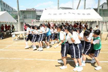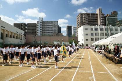 梅雨とは思えぬ快晴の下、第65回体育大会が行われました。30度を超える暑さでしたが、熱中症や気分が悪くなる生徒も出ず、少しケガをした人はいましたが無事に終えることができました。