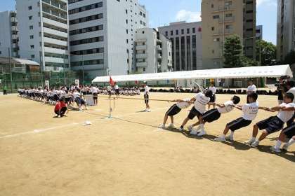 最初の種目から各団から大きな声援が飛び、白熱した戦いが始まりました。綱引きでは、体育大会史上まれにみる青団と白団の戦いもありましたが、赤団が圧倒的な強さで綱引き戦を制しました。(続きは、明日以降発信します。)