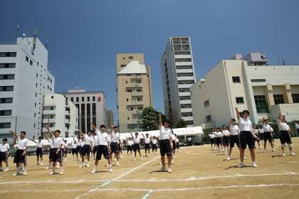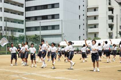 本校の伝統である各団の応援パフォーマンスも趣向が凝らされ、3年生を中心にユーモアあふれるもの、可愛らしいもの、団長の熱いダンスなど、バラエティに富んで大変楽しい時間になりました。また、相手方に送るエールのパフォーマンスもお互いが笑顔で交換し合い、ほのぼのとしたものになりました。