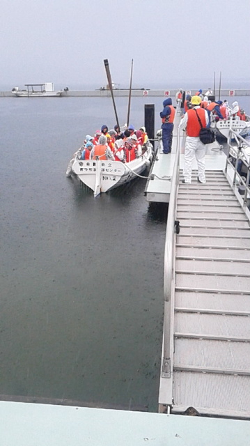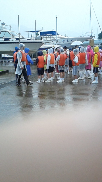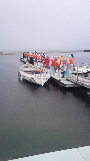 ライフジャケットを着けて出港しました。ゆっくりと進んでいます。オールが重そうです。