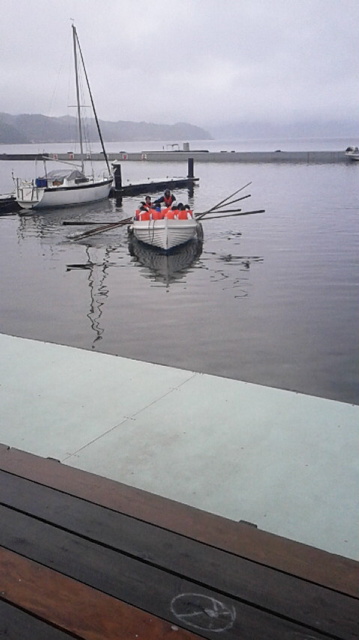 後半のカッター訓練が終了しました。今からお風呂です。皮肉なことに雨があがってきました。みんな声をだして雨の中がんばりました