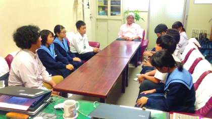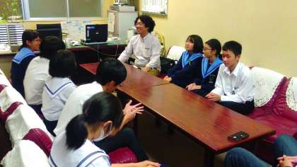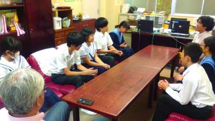 防災フォーラム後、校長室で生徒会メンバーと鹿野さんが1時間ほど交流会を持ちました。