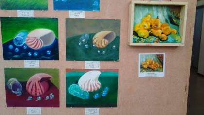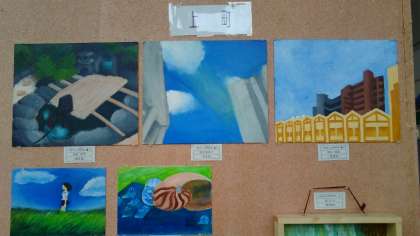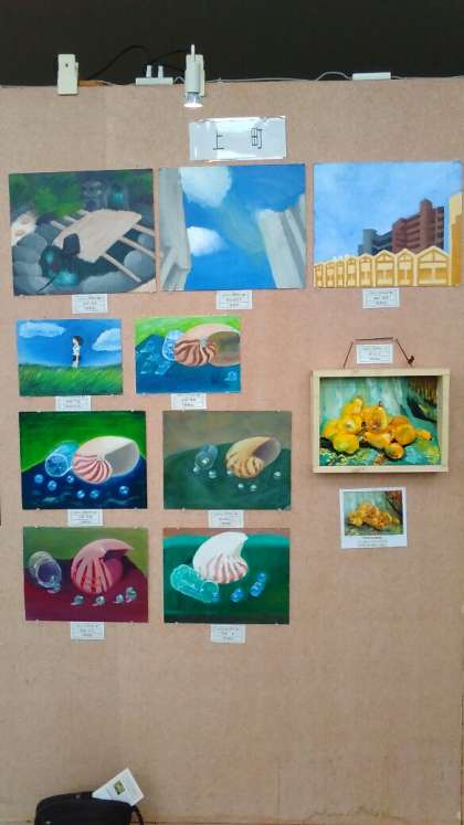 美術部は全員が油絵を出品しました。風景画、静物画で、実際に立体に色づけをして表現している作品もあり、驚かされました。