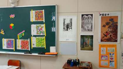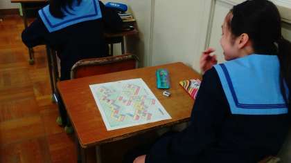 今、3年生の美術の授業では、「等角投影法」を使ったデザインを考え、製作しています。自分の名前をカタカナやアルファベットで表しデザインしたり、色合いも相性のいいものを選んだりとそれぞれが自分の個性を出した作品になっていっています。