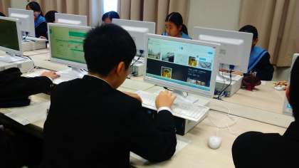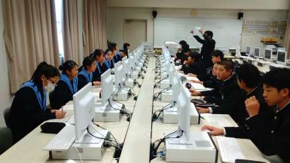 パソコン教室では、一人1台のパソコンを使って能率よく調べ、質問事項などもまとめていました。