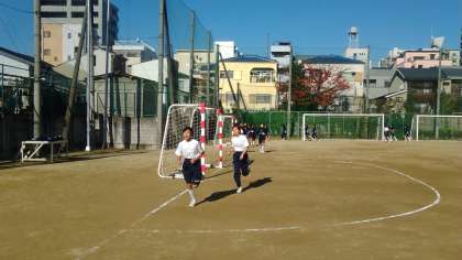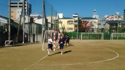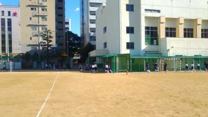 1年の女子体育は、今日から持久走の練習が始まりました。第1回目は、慣らすために短い距離でしたが、これからだんだんと増やしていくそうです。