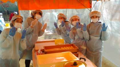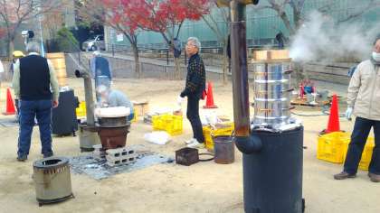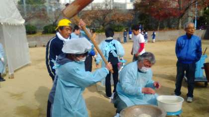 昨日、空堀桃谷公園で「子ども餅つき会」が行われ、わが上中生も8名がお手伝いとして参加しました。