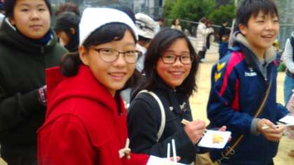 つきたてのお餅を求めてたくさんの人が集まってくださり、お手伝いの上中生も大忙しでしたが、会場全体に活気があり、非常に盛り上がりました。1年生も何名か遊びに来てくれて、美味しそうにお餅をほおばっていました。