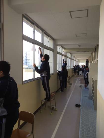 学年集会後、全校挙げての大清掃を行いました。今学期の汚れを日常の清掃場所だけではなく、特別教室や廊下なども含めて隅から隅まできれいにしました。