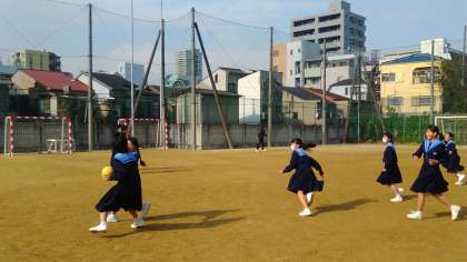 今日の昼休みです。学級休業になっているクラスもあるのですが、一方で運動場を走り回っている上中生もたくさんいます。ここで掲載している写真は全て3年生です。男子はサッカー(?)、女子はハンドボール(?)で楽しんでいます。