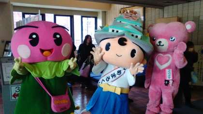生徒会の2名は、阪神淡路大震災や東日本大震災に関する詩の朗読を舞台上で行い、震災を忘れず、防災・減災の意識を高めようというメッセージを発信してくれました。また、中央区のマスコットである「ゆめまるくん」と社協キャラクターの「ももっぴぃ」の着ぐるみの中にも生徒会メンバーが入り、会場を盛り上げてくれました。