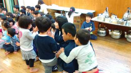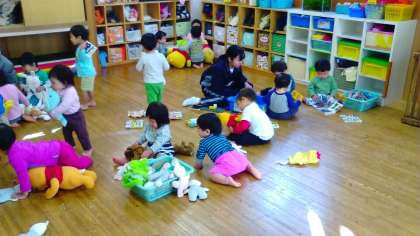 保育園では、園児と同じ目線で遊んだり、ゲームをしたり、お散歩の引率をやってくれたり、大忙しの状態でした。
