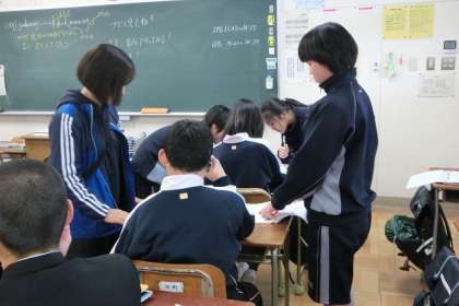 始めはお互いに遠慮気味でしたが、演習や作業になると上中生が先生の説明で分かりにくいところはないか、作業の仕方で分からないところはないかと、そばに行って話しかけたり、身振り手振りで伝えたりしている姿が見られるようになってきました。