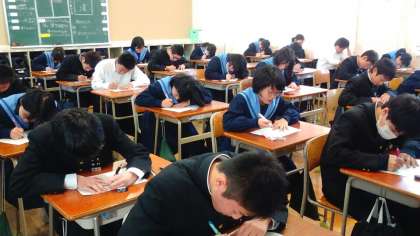 本日の5限目、2年生は全クラス一斉に「漢字百問テスト」に取り組みました。予告されていた漢字の中から百個の漢字の書き取りを行うものです。何を勉強すればよいかハッキリしていたので、みんな普段の定期テストより(?)頑張って覚えていました。