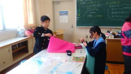 細かい作業も丁寧に美しく仕上げていっている生徒もいて、集中力と器用さに感心させられました。災害は起こってほしくありませんが、いざという時に活用できるものに仕上げましょう!