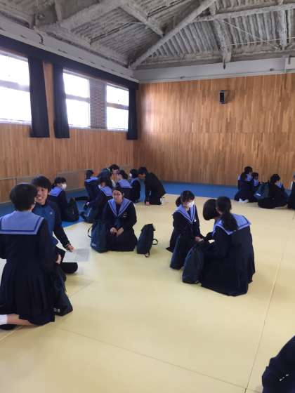 3年生が出願に出発しました。昼食後、受験する人は武道場に集合し、書類の確認等を行い、同じ方面ごとに分かれて出発しました。