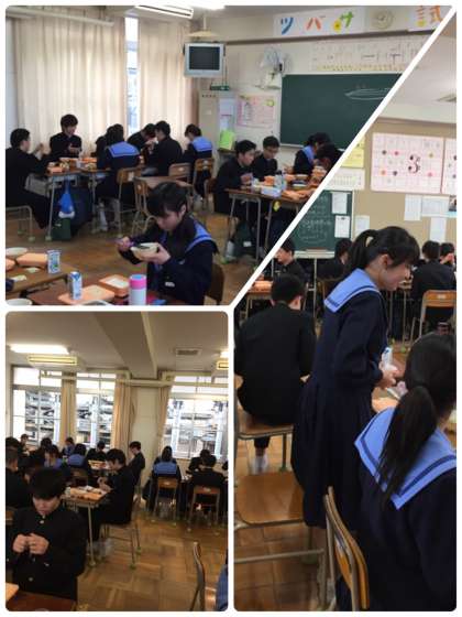 時のたつのは早いもので、3年生は今日が最後の給食になりました。その日が桃の節句であり、菱餅をイメージしたゼリーがついているのも偶然とは言え面白いなぁと思いました。「おかずが冷たい」などいろいろありましたが、終わりとなるとみんな噛みしめるように味わっていました。