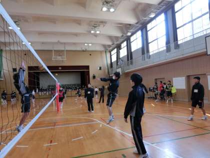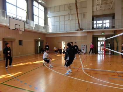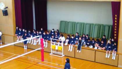 女子は舞台の上にきれいに並んで、楽しそうに声援を送っていました。やはりバレー部の子が際立っていましたが、周りの子に気を遣ったり、アドバイスをしたりしながらプレイしていました。苦手な子もサーブが入ると歓声が上げて喜んでいました。