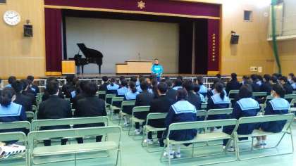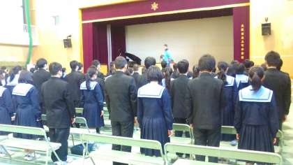 3年生では、今日から本格的な卒業式の練習が始まりました。最初に山本先生から卒業式に臨む気持ちの確認がなされ、良い卒業式にしようという気持ちをそれぞれが持って、練習を開始しました。