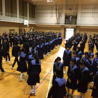 3年生代表の言葉を聞く1・2年生は、いつもよりさらに真剣な目で一つひとつの言葉を心に刻んでいました。1・2年生は、この式の意義をしっかり受け止め、先輩方の思いと上町中の伝統をきっちり引き継いでいこう!