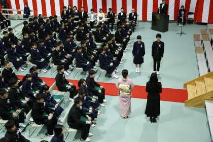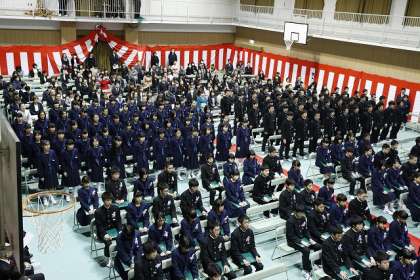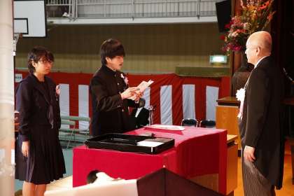 卒業生の答辞では、3年間を振り返るとともに、上町中で学んだ思いやりの心、仲間の大切さをこれからも忘れず、次の進路でも活かしていきたいという話がありました。